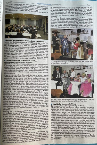 Das Theaterstück „Oh du fröhliche“ erwies sich als voller Erfolg: Sämtliche Vorstellungen waren restlos ausverkauft, die Stimmung sowohl auf als auch hinter der Bühne war an jedem Abend ausgezeichnet. Auch der Vereinsausflug mit einer Dorfführung durch Westum und dem anschließenden Besuch des Winzerhäuschens kam bei den Mitgliedern bestens an und förderte das Gemeinschaftsgefühl innerhalb des Vereins.